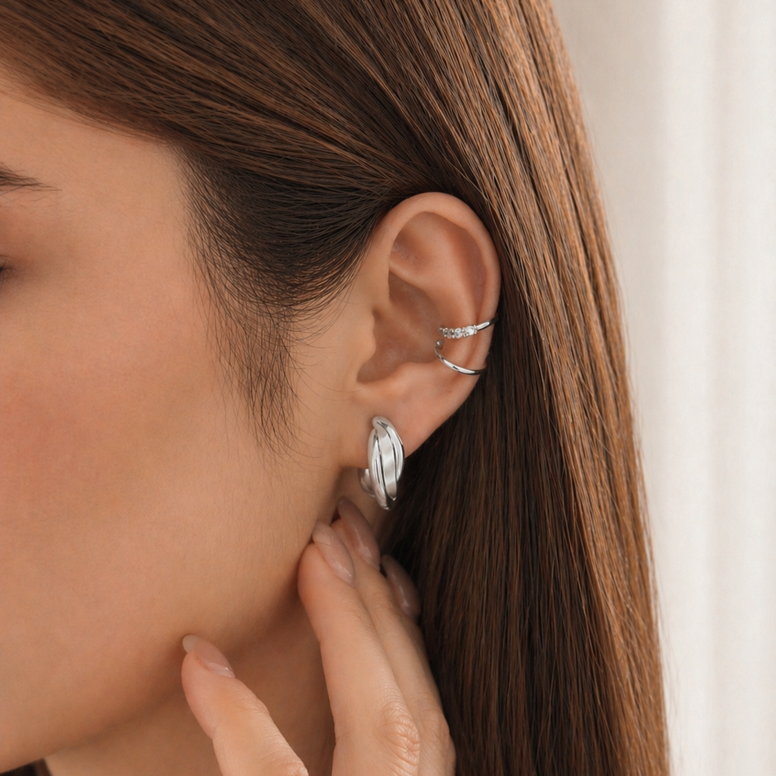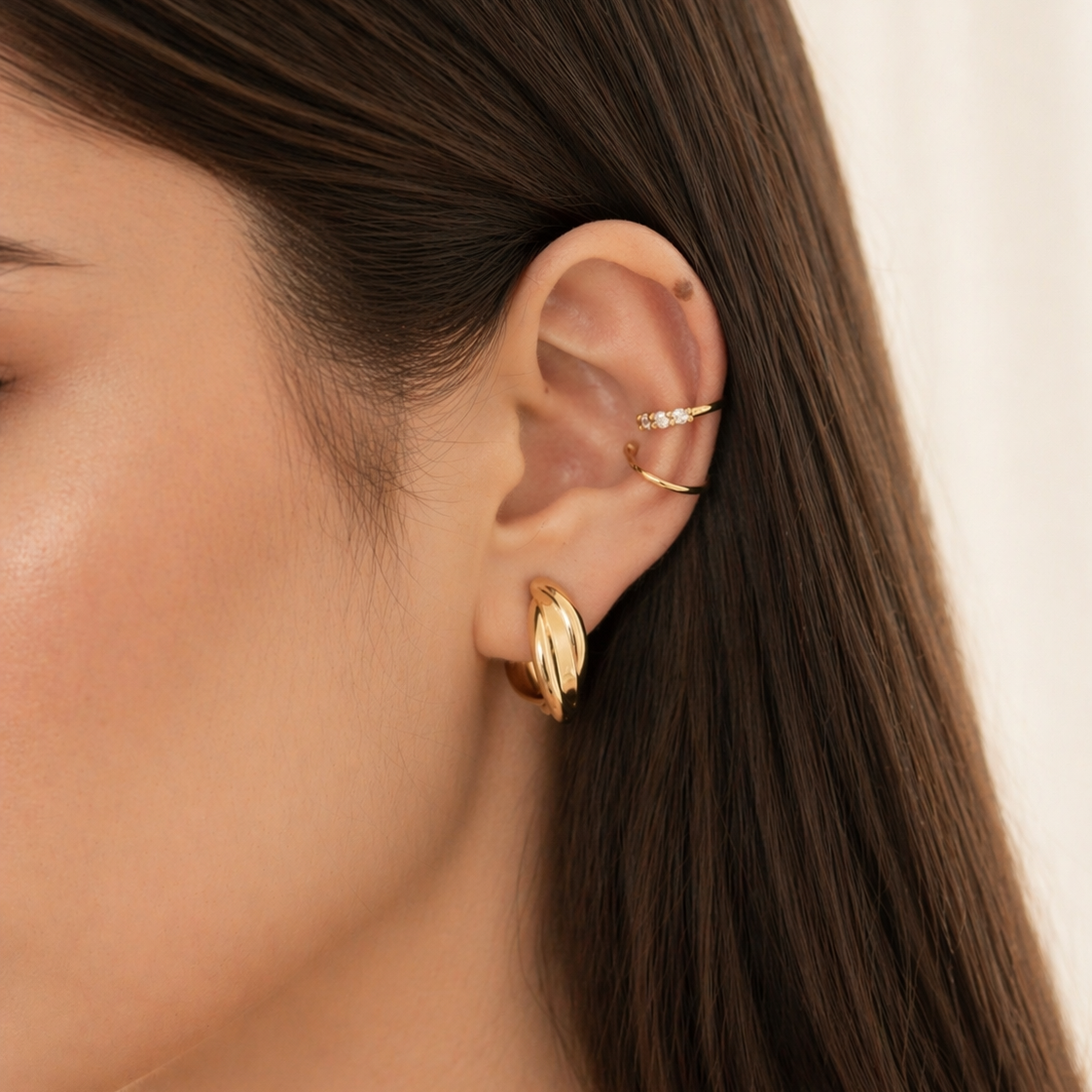 Fabricados con acero inoxidable de alta calidad con baño de oro de 18K o plata, se sienten seguros y cómodos para el uso diario. El diseño con clip los hace fáciles de combinar con atuendos casuales, looks de trabajo o ocasiones más formales.