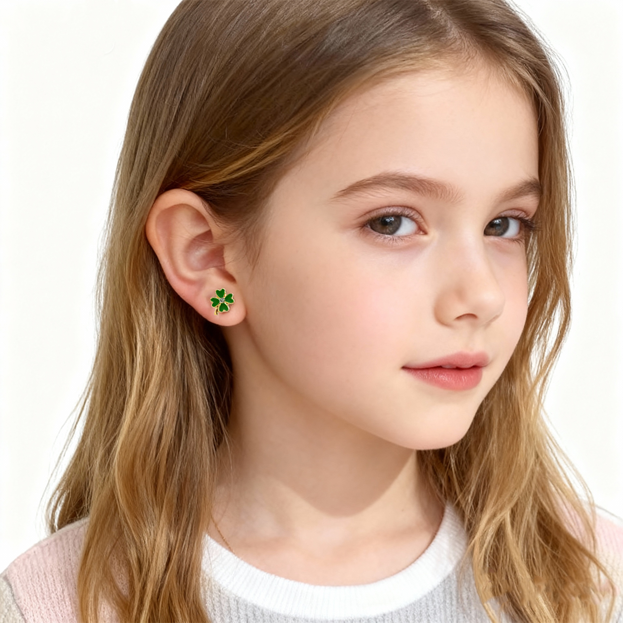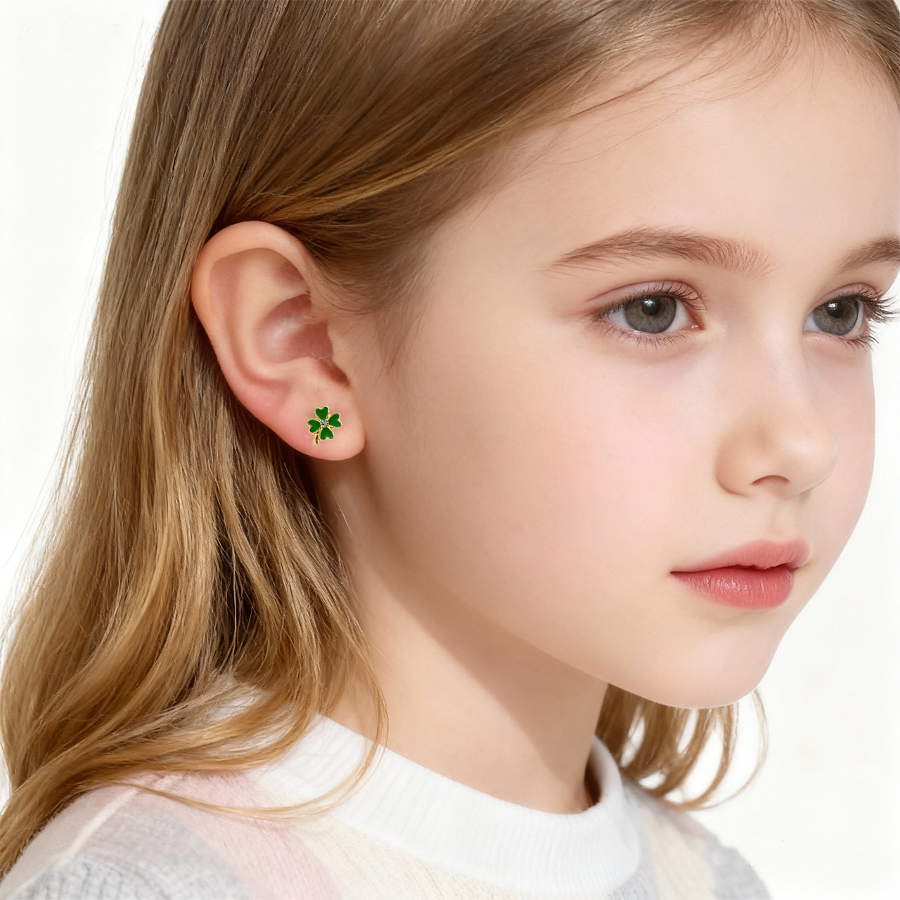 Deze kinderclip-oorbellen met klavertjevier voegen een vleugje schattigheid toe aan elke outfit. Hun lichte, comfortabele ontwerp is perfect voor de hele dag dragen en vult de look van een kind prachtig aan.