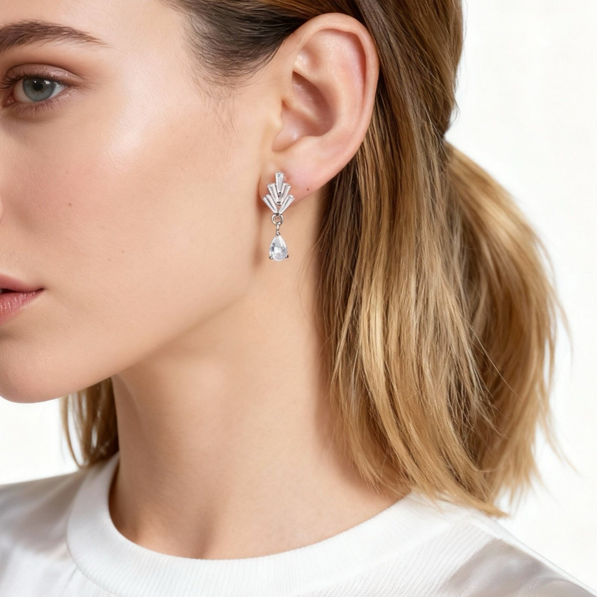 Dessa örhängen är tillverkade med överlägsna zirkoniumstenar och lätta, miljövänliga clips för maximal komfort och skydd av ditt öra. Clipsen minskar risken för infektion, vilket säkerställer en behaglig bärupplevelse och ett attraktivt utseende.