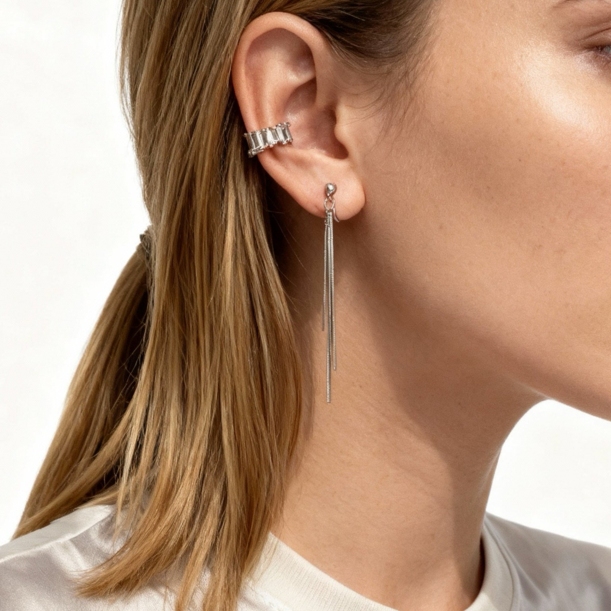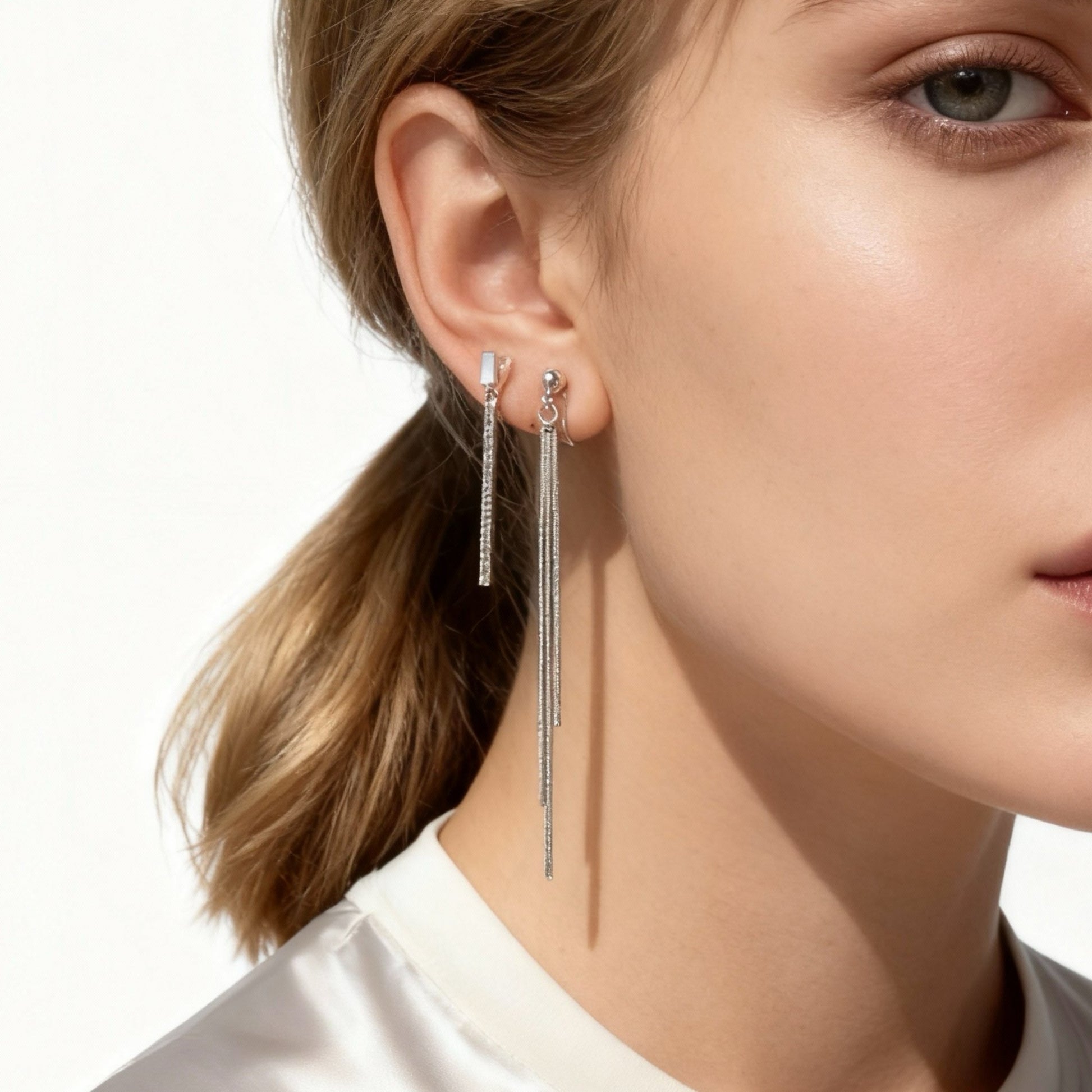 Denna Delicate Beam Fringe Dangle Clip On Earrings-stil är ett långt tofsörhänge med hängande design. Den metalliska texturen och de flödande tofsarna ger en sofistikerad och elegant känsla. Ger en perfekt lösning för konsumenter som inte har hål i öronen men vill bära iögonfallande örhängen.